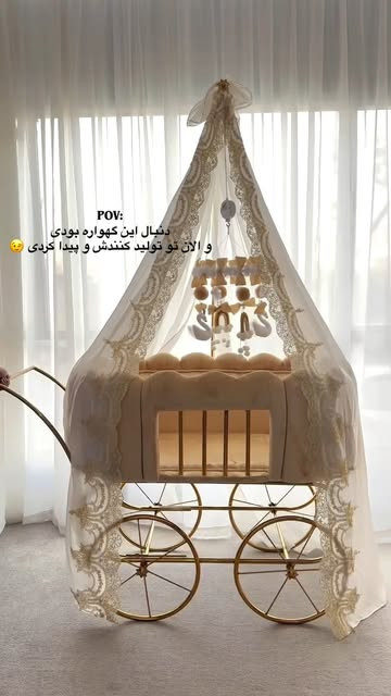 - گهواره با پایه چرخدار همراه آویز موزیکال و تور حریر ۱۹/۹۰۰/۰۰۰🌸🌱