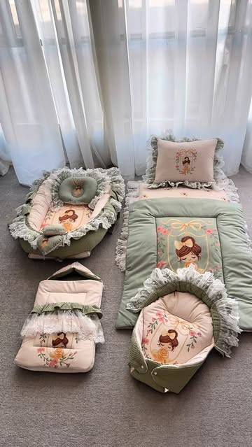 ست شامل تشک گارد دار سایز هگی و بالشت فرمدهی نوزاد، ست مسافرتی بنددار (مناسب تا ۳ سالگی) و آغوشی قنداق زیپ دار با جنس مخمل کالیفرنیا.
